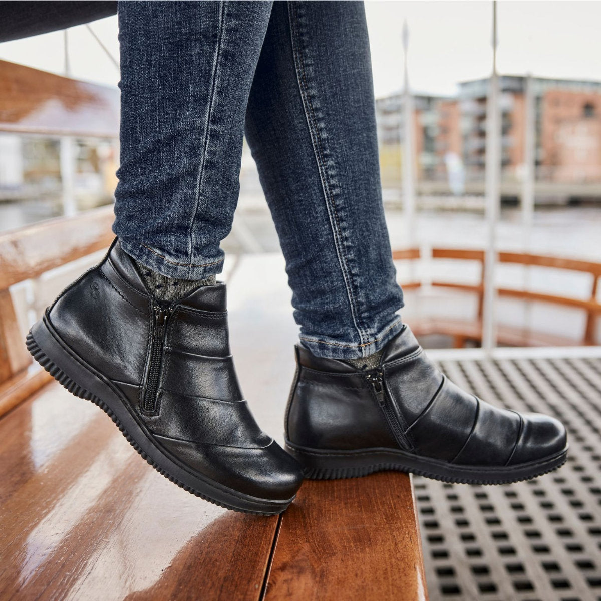 For én komfort og fashion med Lugano Laisa. En eviggyldig klassiker fra Green Comfort. Superkomfortabel, kort støvle i læder med dobbelt lynlås og smarte syninger, der giver et helt særligt look. Lynlåsene gør samtidig støvlen let at få af og på, med den mønstrede gummisål er du sikker på et godt vejgreb.
