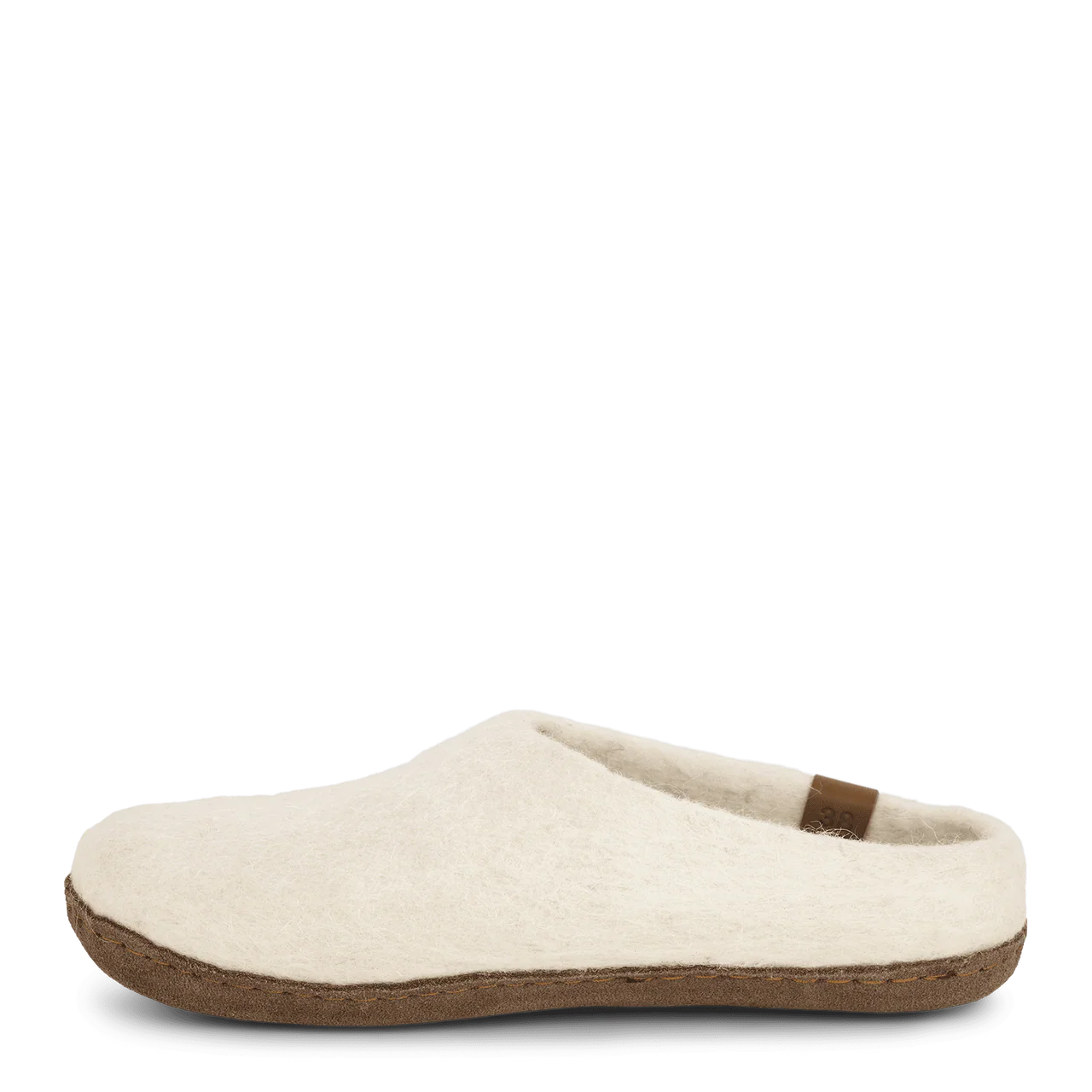 De lækre hjemmesko fra Green Comfort i en smuk hvid farve. Det er filtede uldhjemmesko som har en helt unik kombination fra den naturlige uld og den gode komfort og stødabsorbering fra deres EnergySole.