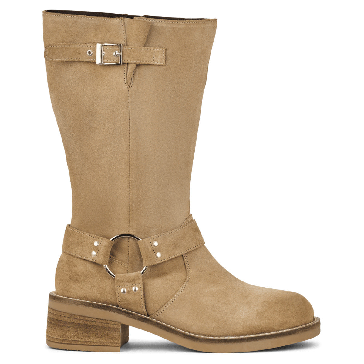 Copenhagen Celeste er en stilfuld støvlet i hvidvasket sandfarvet ruskind, der kombinerer et autentisk look med rå detaljer og spænder. Den rummelige pasform og den unikke 3 mm EnergySole™ sikrer fantastisk komfort og reducerer træthed gennem dagen.