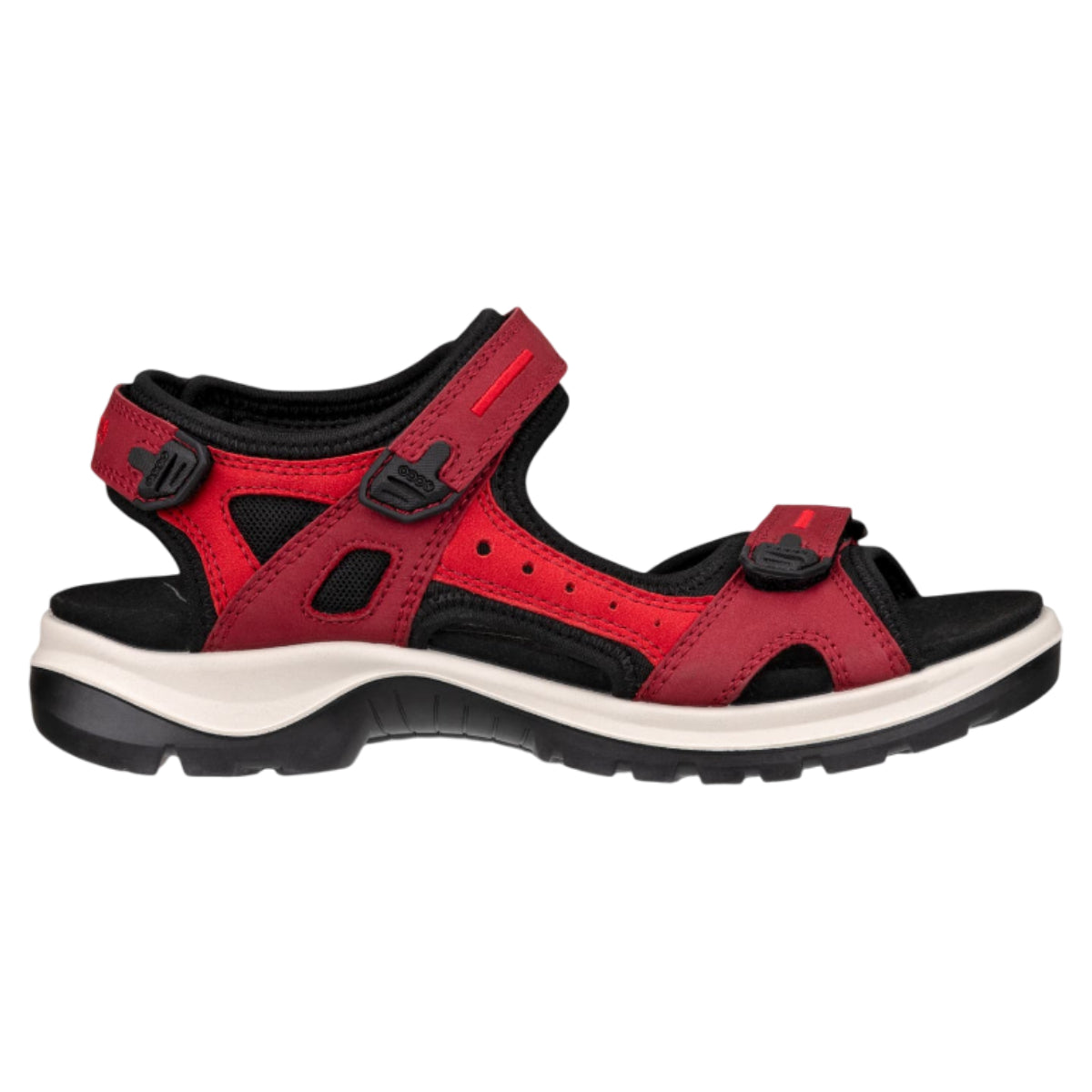ECCO OFFROAD sandalen i rød er designet til både komfort og støtte. Fremstillet i kvalitetslæder fra ECCO, giver den holdbarhed og et stilfuldt udseende. Med 3-punkts justerbarhed kan du tilpasse sandalen for en perfekt pasform, der sikrer komfort hele dagen.