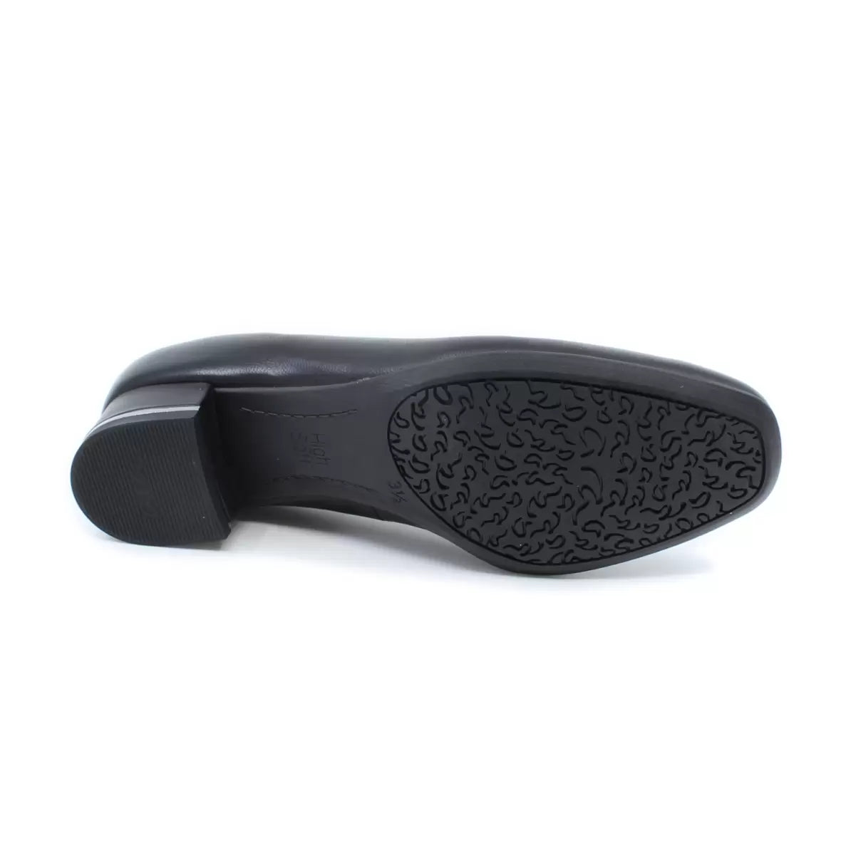 Klassisk pump fra Ara lavet i sort glat skind med Highsoft der giver en ekstra blødhed til skoen, den lille blokhæl måler ca. 3,5 cm og har en fin detalje med en sølv kant og ydersålen der er fleksibel er lavet i gummi. Vidde H