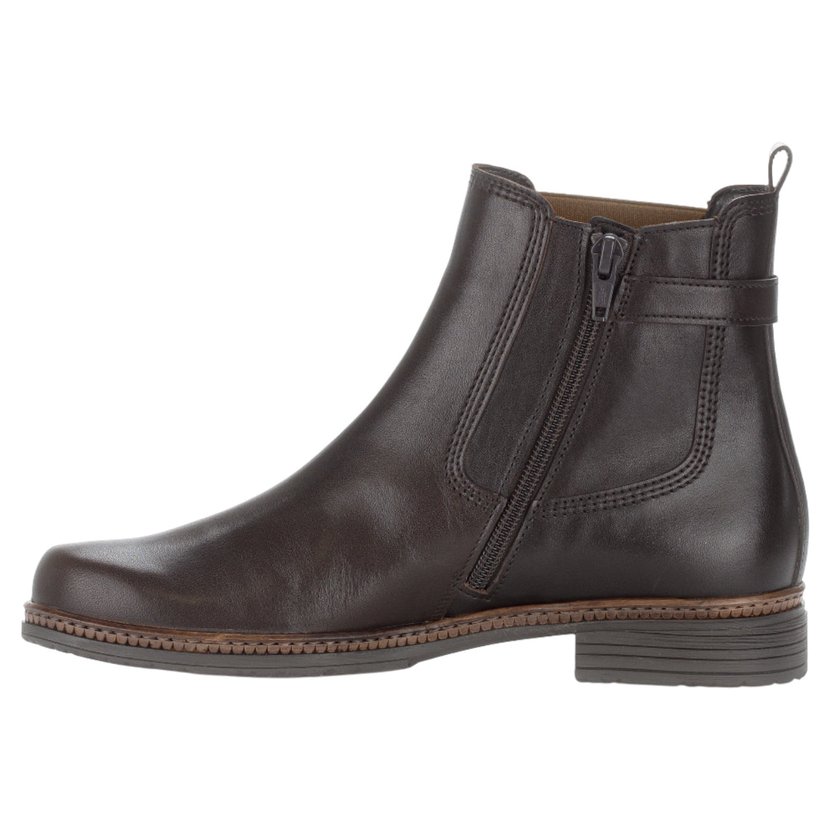 Stilfuld og komfortabel Chelsea Boot fra Gabor i blødt glat læder med klassisk rund snude. Støvlen har en praktisk blockhæl på 3 cm, tekstilfor og en udtagelig indlægssål for ekstra komfort og mulighed for individuelle tilpasninger. Med en skaftshøjde på 14 cm og normal bredde (F) passer støvlen perfekt til de fleste fødder.
