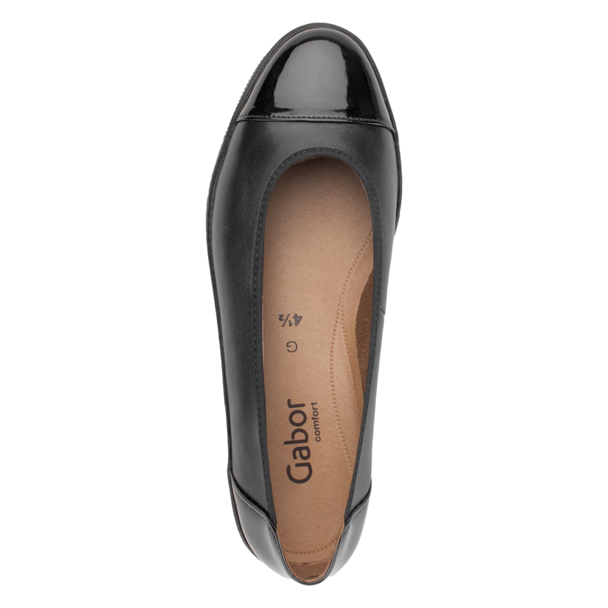 Klassisk ballerina fra Gabor kombinerer tidløs elegance med komfort hele dagen. Overdelen er lavet i en flot kombination af lak og skind, der giver skoen et stilfuldt og eksklusivt udtryk.