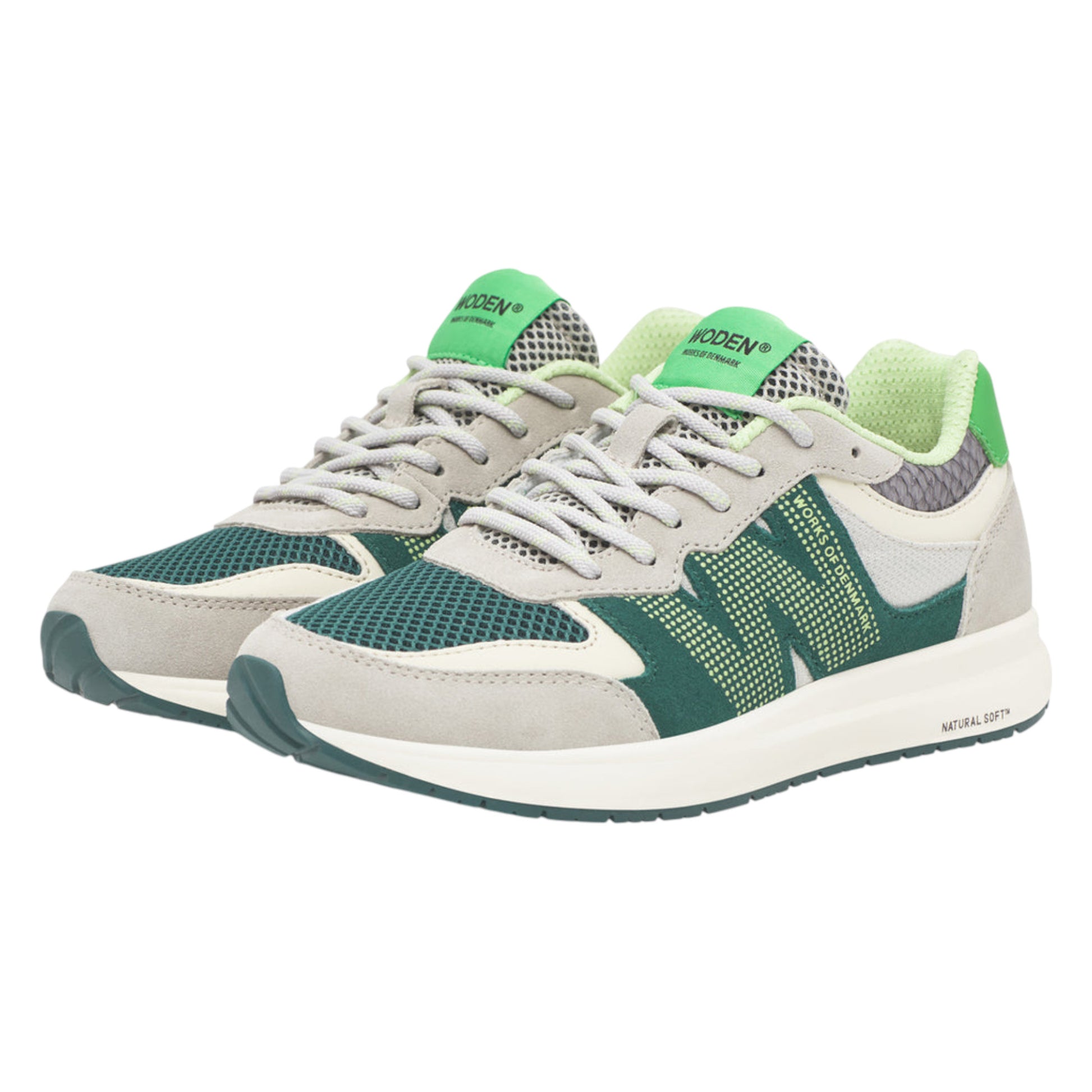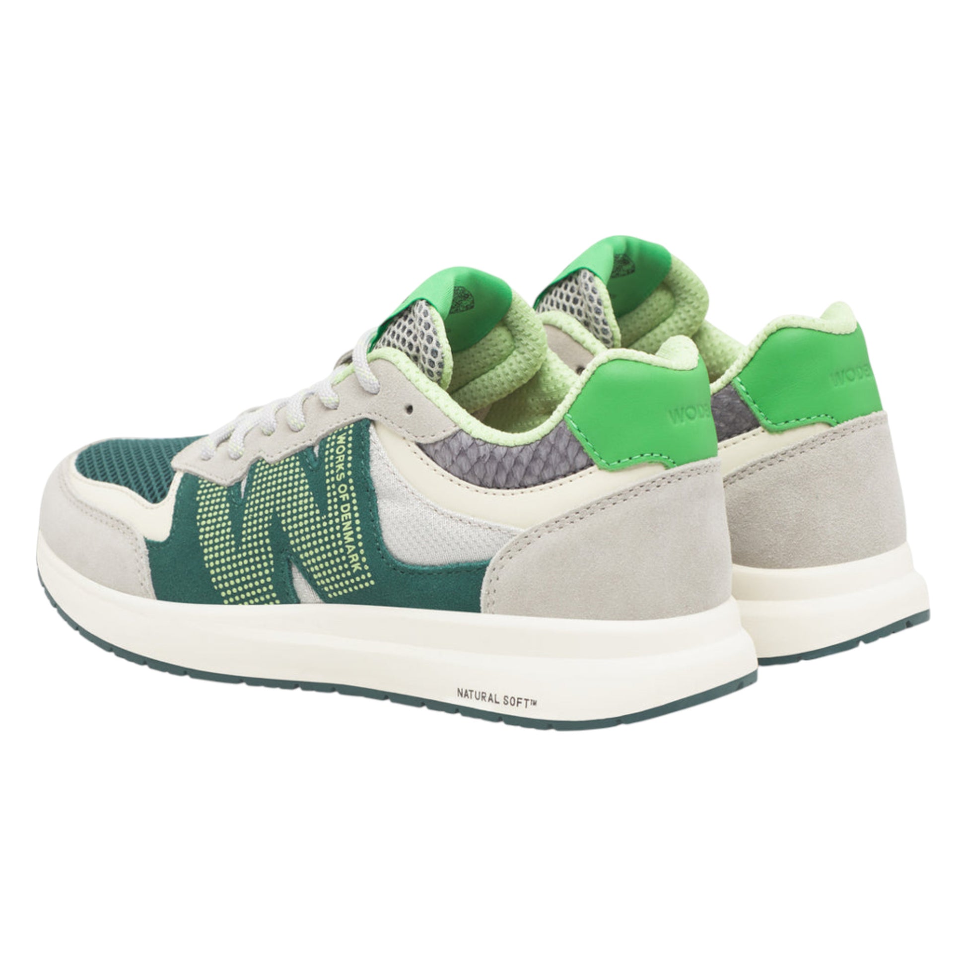 Den lette EVA-mellemsål og ydersål i gummi med 10 % genbrugsgummi sikrer holdbarhed og stødabsorbering, mens den bløde PU-indersål med korkforing sammen med WODENs Natural Soft™-teknologi og Air Flow System™ giver optimal åndbarhed og komfort hele dagen.