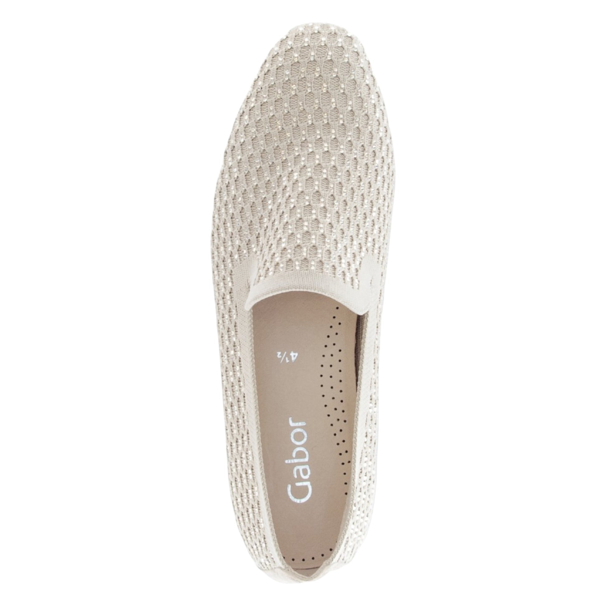 Elegant og komfortabel slip-on sko fra Gabor, designet til dig der ønsker både stil og god pasform i hverdagen. Skoen er udført i et blødt materialemix af læder og læderimitation, som former sig behageligt om foden. Den flade hæl på 1,5 cm giver stabilitet og komfort hele dagen, mens den runde snude sikrer god plads til tæerne.