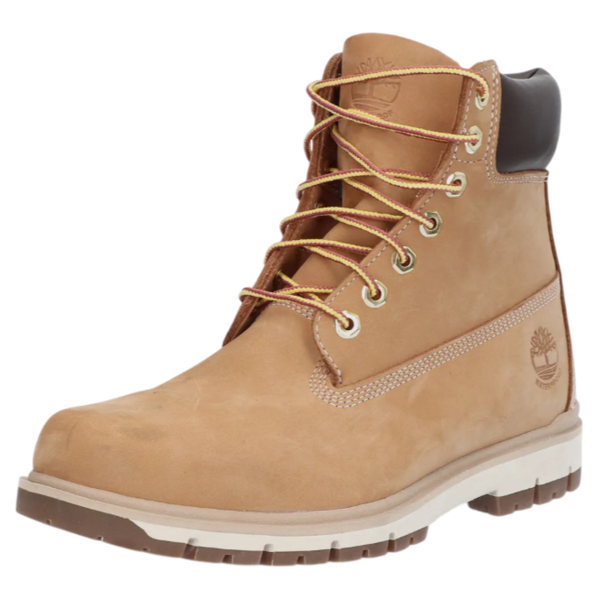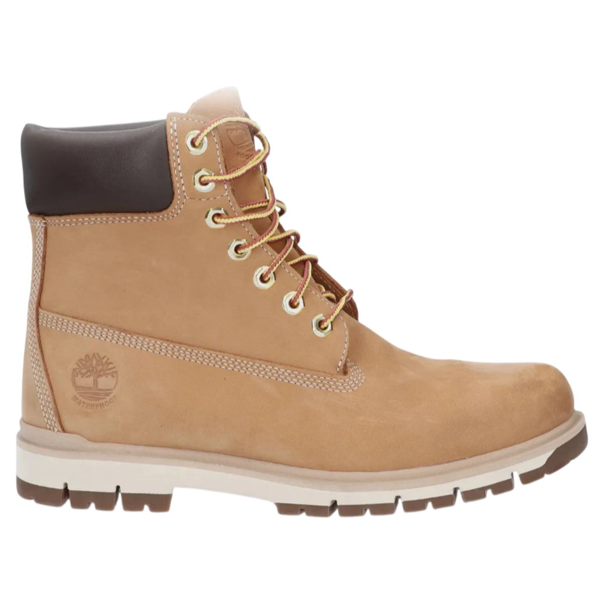 Timberland Radford 6 Inch WP Boot er en ikonisk vandtæt støvle i premium nubucklæder i en elegant, lys solbrun tone. Den har en let og stødabsorberende mellemsål, en slidstærk gummisål med sikkert greb samt en blød, polstret krave for optimal komfort omkring anklen.
