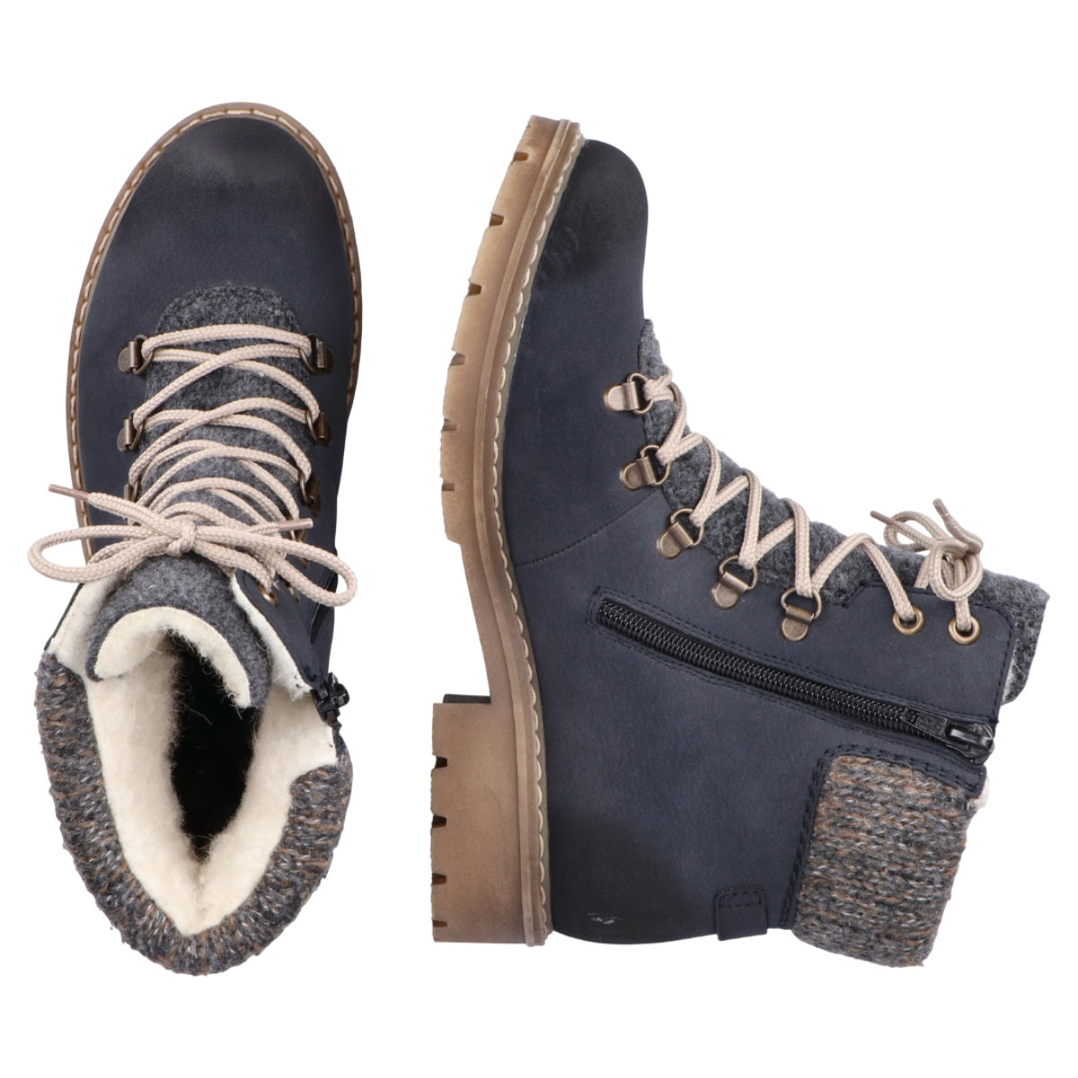 Rieker Dame Støvle – Blå Snørestøvler med Komfort og Stil