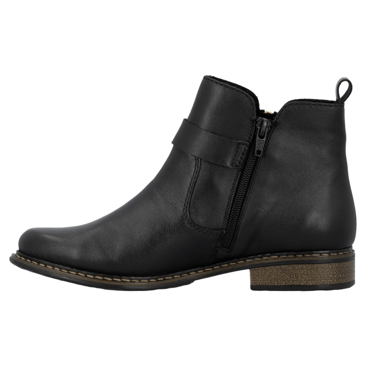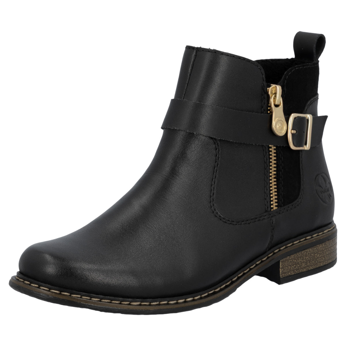 Rieker støvle i sort til dame. En elegant støvle i sort, perfekt til hverdagen. Modellen har en skindoverdel med smukke detaljer, og lynlåsen på indersiden gør den let at bruge. Indvendigt sørger en blød sål og en let foring for varme og komfort hele dagen. Den solide ydersål har stødabsorbering og mønster, som øger stabilitet og skridsikkerhed, uanset underlag.