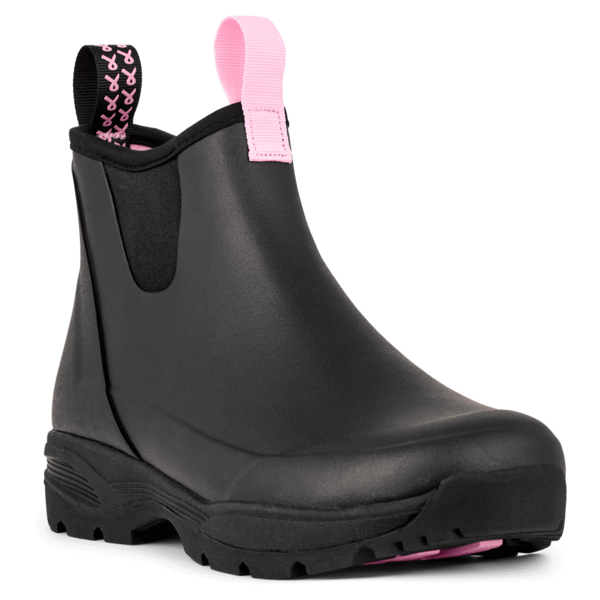 De sorte gummistøvler er designet med lyserøde detaljer og den ikoniske sløjfe på stroppen. De er fremstillet i blødt, slidstærkt gummi, der holder fødderne tørre, og udstyret med 4,5 mm EnergySole™ Shape med svangstøtte og ekstra polstring for maksimal komfort og stødabsorbering.