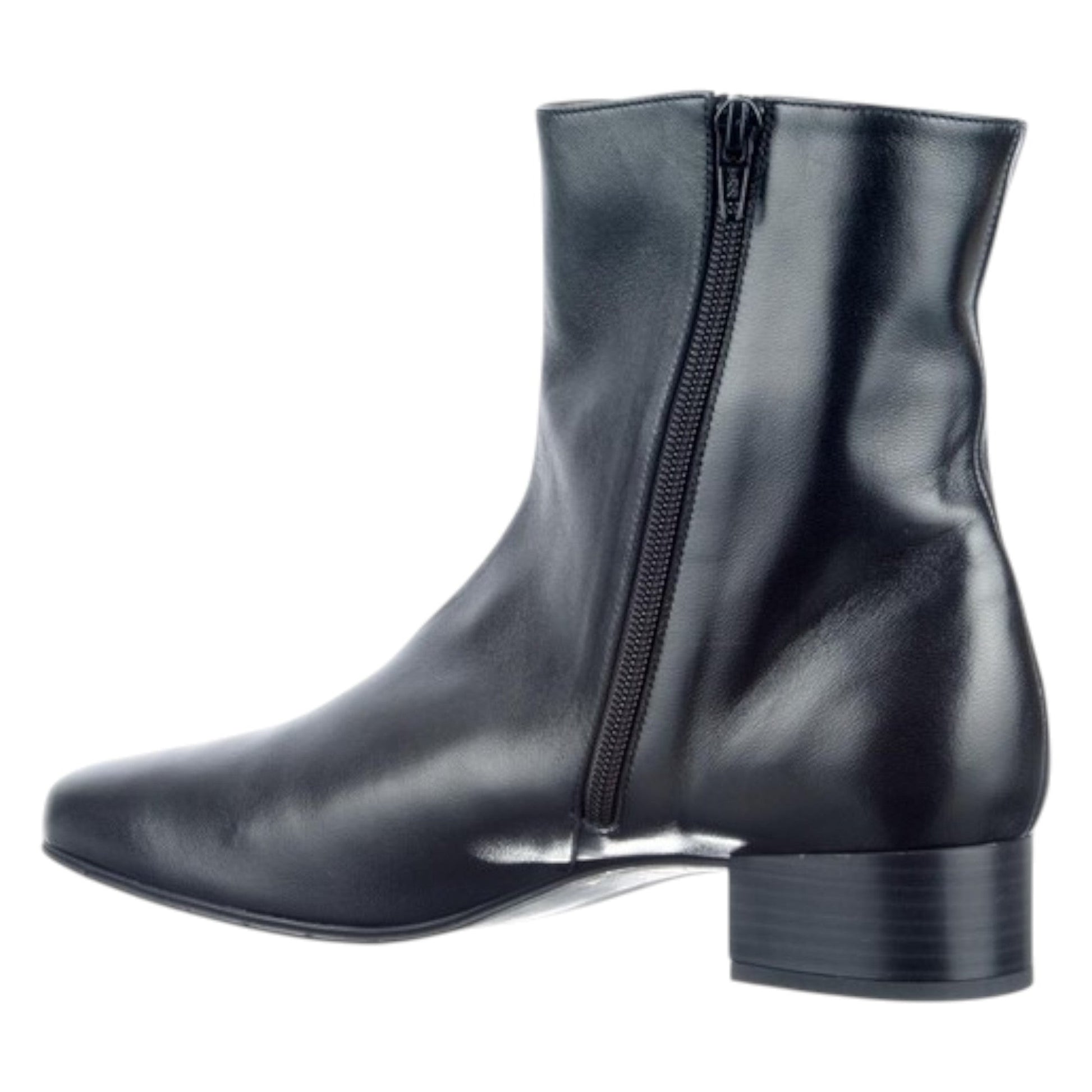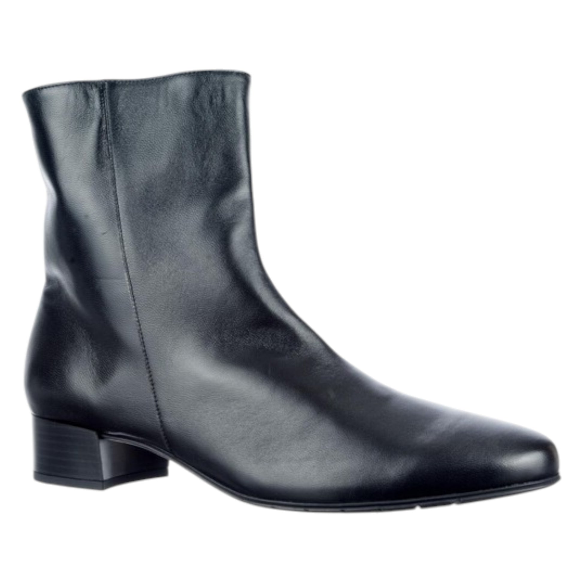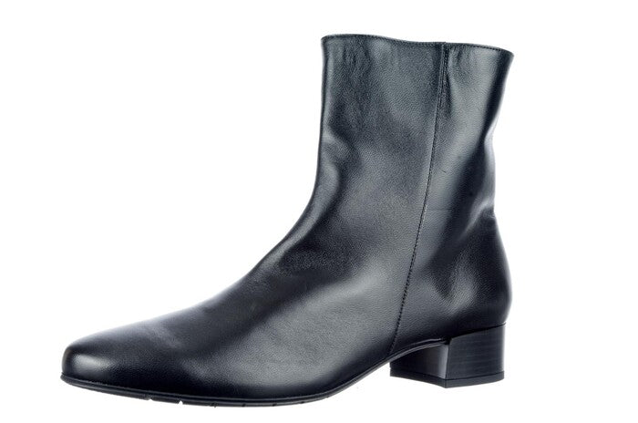 Tidløst formet ankelstøvle fra det italienske mærke Brunate. Udstyret med en lille, elegant blokhæl på 2,5 cm og fremstillet i læder af høj kvalitet. Passer til almindelige til lidt smallere fødder. En smuk basisstøvle, der kan kombineres med mange forskellige outfits.