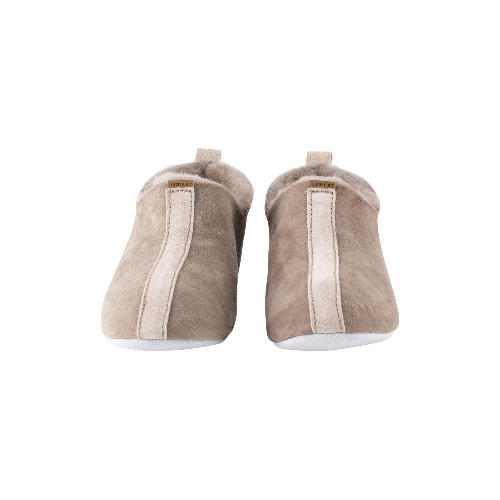 Lina tøfler i 100% fåreskind med sål i ruskind fra Shepherd of Sweden. Farve: stone.
